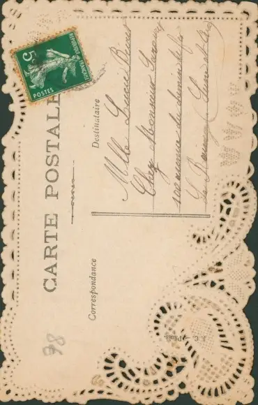 Klapp Ak Amitie, Blumen, Rosen, Serviette, Spitzen