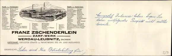 Klapp Ak Leubnitz Werdau in Sachsen, Franz Zschenderlein Zarf-Werk