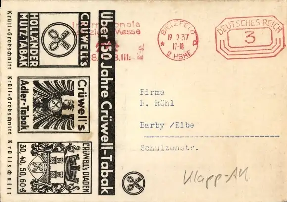 Klapp Ak Reklame, Crüwell-Tabak, Bielefeld, Preisliste