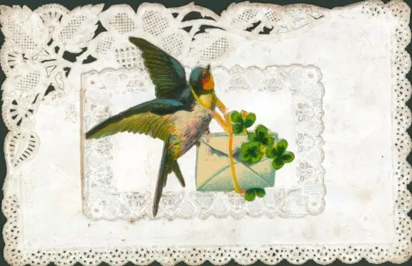 Klapp Ak Schwalbe mit Brief, Post, Glücksklee, Spitzen