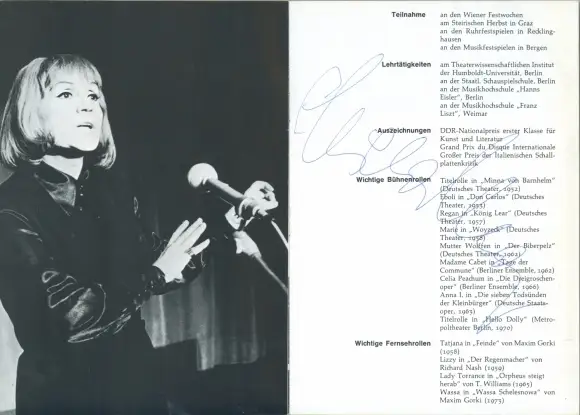 Klapp Autogrammkarte Schauspielerin und Sängerin Gisela May, Portrait, Autogramm