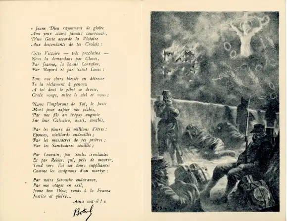 Klapp Künstler Ak Prayer to the Young Good God von Theodor Botrel, Young Good God Who, in der Krippe