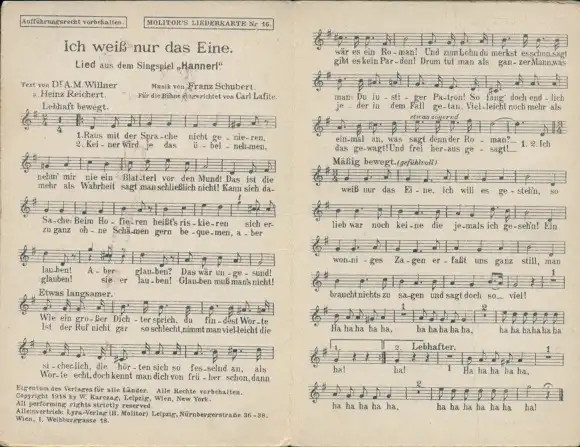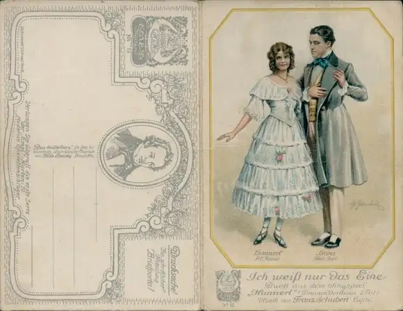 Klapp Lied Ak Ich weiß nur das Eine, Paar, Hannerl, Hans, Komponist Franz Schubert