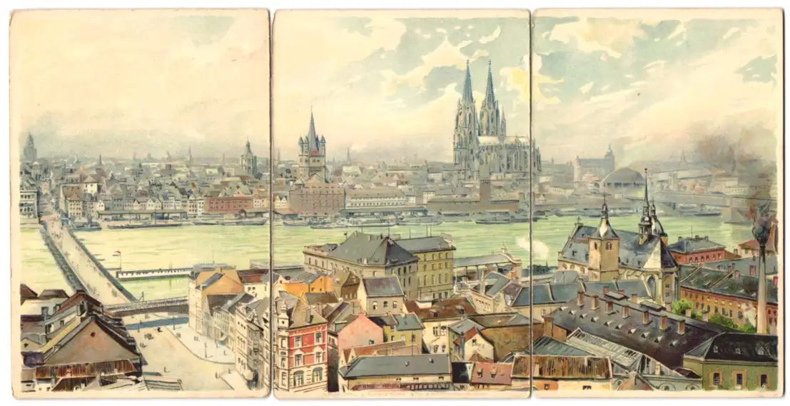 Klapp-Lithographie Köln a. Rh., Stadtpanorama mit Blick zu Dom