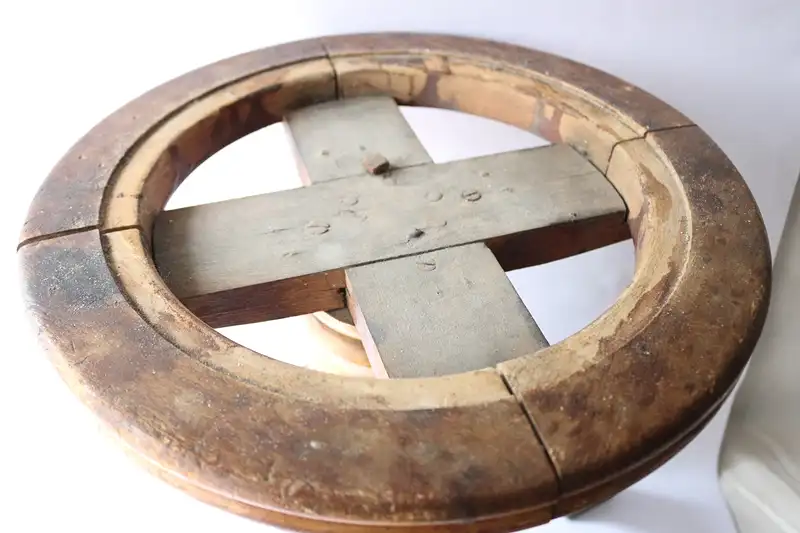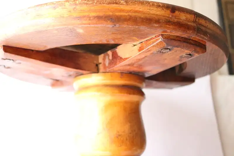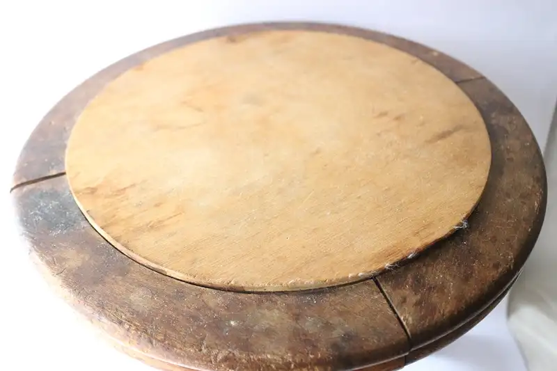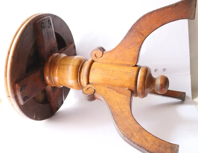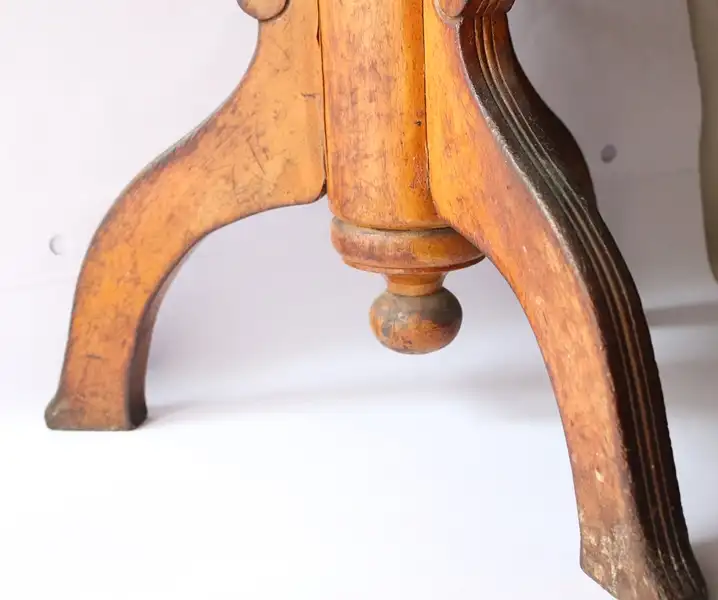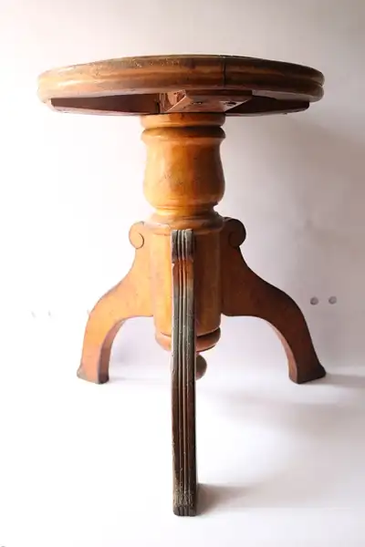 Klavierhocker, braunes Holz, ohne Sitzbezug, Gewicht 4, kg, Höhe 46,0 cm; Dm Sitzfläche 35,0 cm; Außenstand Füße 41,0 cm (auch unter gefuna.de)