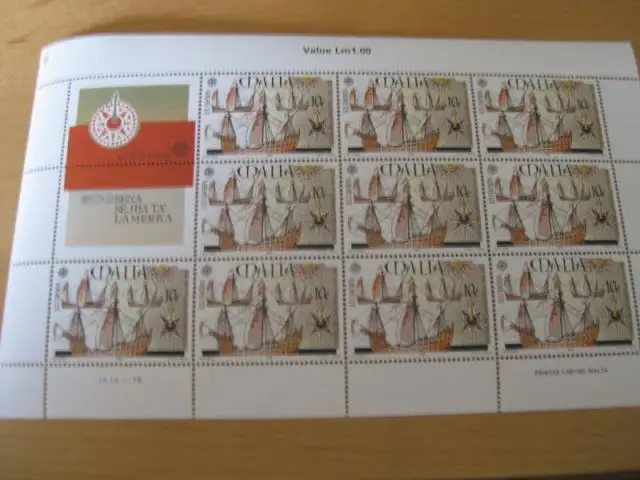 Kleinbogen KB CEPT 1992 Malta Mi.-Nr. 885-6 **