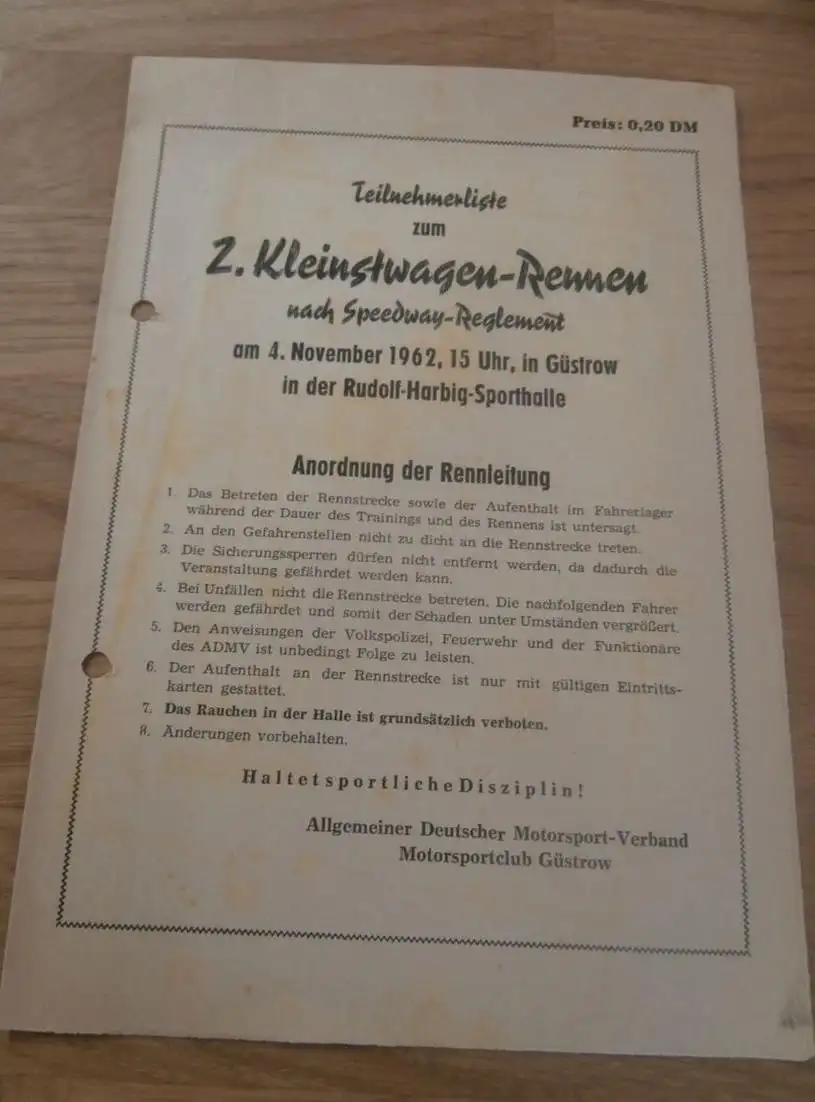 Kleinwagen-Rennen in Güstrow , 4.11.1962 , Mecklenburg , Programmheft / Programm / Rennprogramm , program !!!
