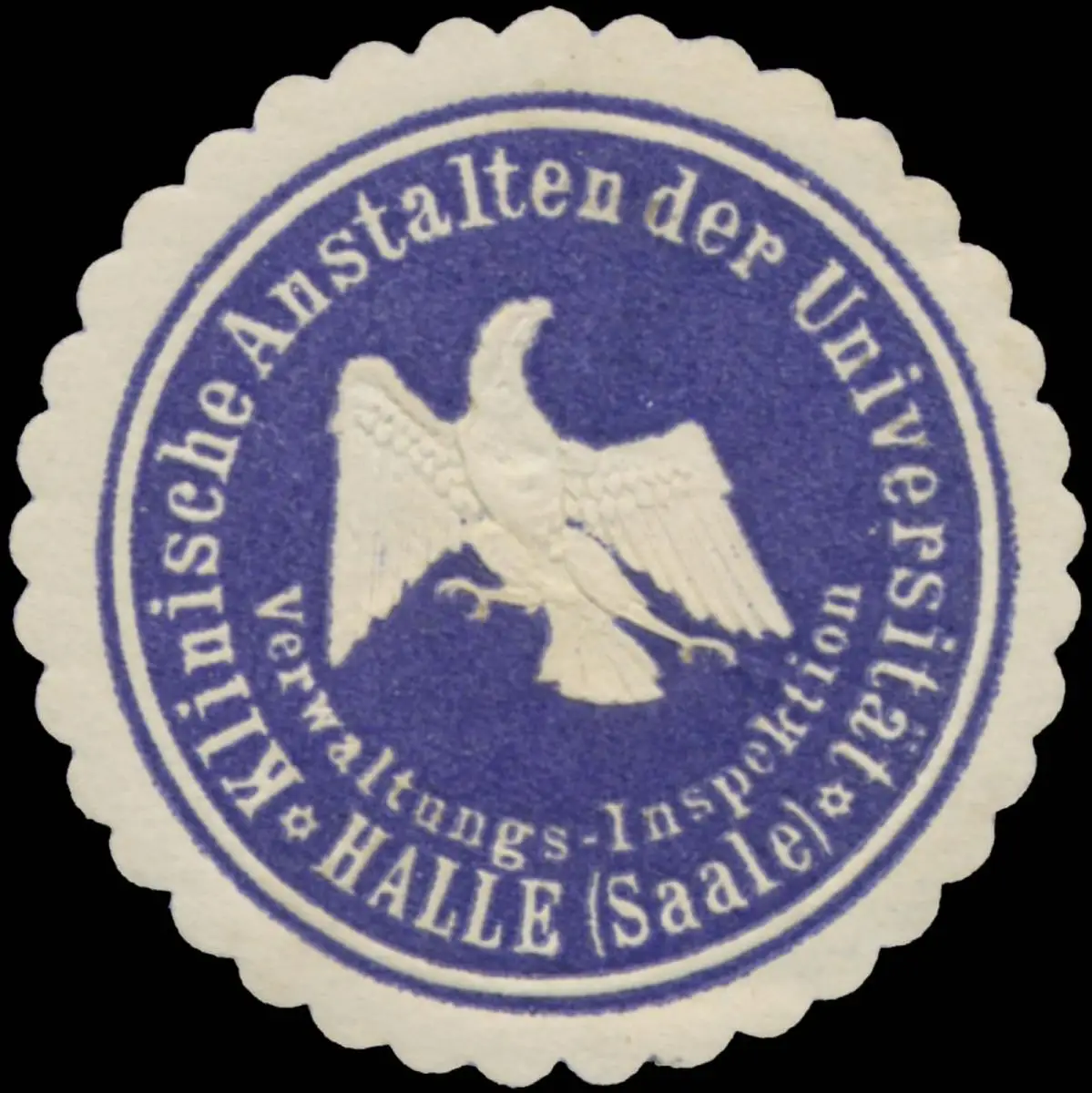 Verwaltungs-Inspektion, Medizin, dunkelblau, weiß, geprägt, Größe/Zustand: 4 , leicht beschädigt, Original Verschluss-Siegelmarke aus Papier welche früher von Behörden, Firmen etc. zum Versiegeln der Briefe benutzt wurden