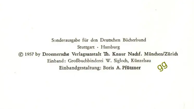 1957 erschienen in der Droemersche Verlagsanstalt, München