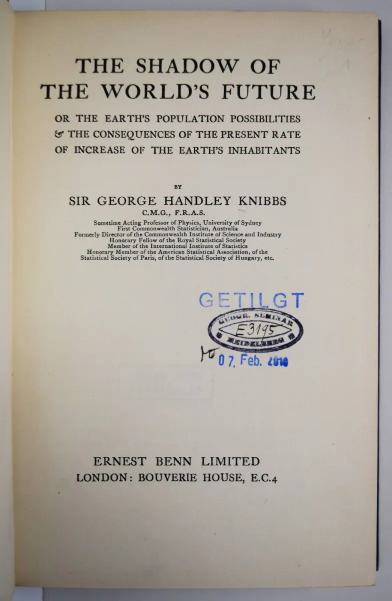 Statistikers des Commonwealth Sir George Handley Knibbs (1858-1929). –