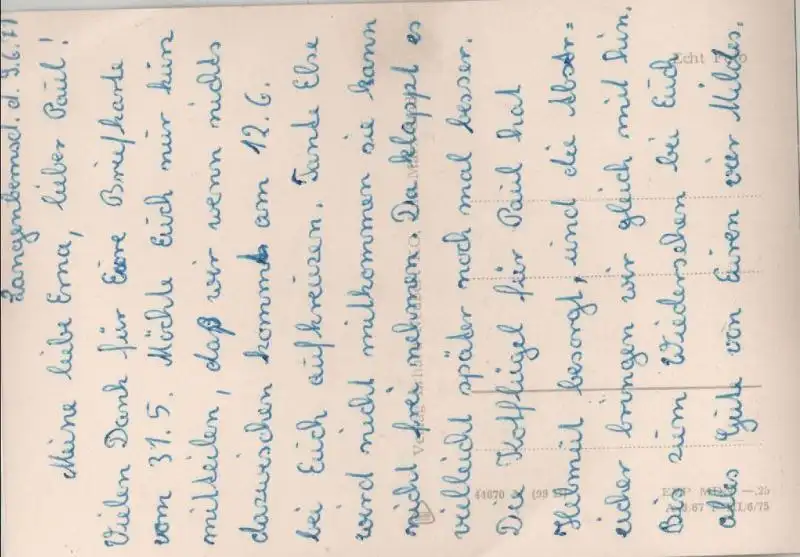 Ich hatte die Rechnung sofort als Vorkasse bezahlt, aber keine Zusendung der Karte erhalten. Trotz Nachfrage keine Rückmeldung bzw. Erklärung. Da es sich zum Glück nur um 1,70 € handelt, ist die Sache für mich erledigt, ärgerlich, aber zu verkraften. Mit den drei anderen Karten, die ich bestellt hatte, hat alles wunderbar geklappt.
