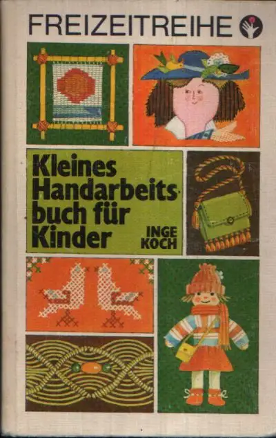 Koch, Inge; Kleines Handarbeitsbuch für Kinder; Illustrationen von Inge Gürtzig; Textile Handarbeiten selbst gestalten; Nähen; Applizieren; Sticken; Weben; Häkeln; Knüpfen; Makramee; Stricken; Fransen, Quasten, Pompons, Schnüre; Pflegetips für Handarbeiten; Kinderbuch; Kinder; Sachbuch; Handarbeiten; Freizeit; Ratgeber