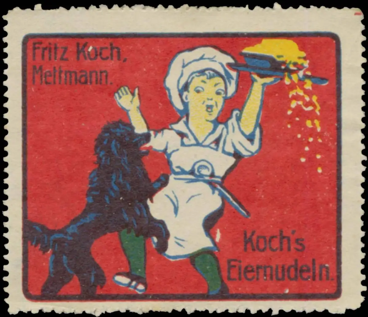 Koch mit Hund, Größe/Zustand: 4x5 , guter Zustand, Original alte Reklamemarke die seinerzeit für die Werbung benutzt wurde