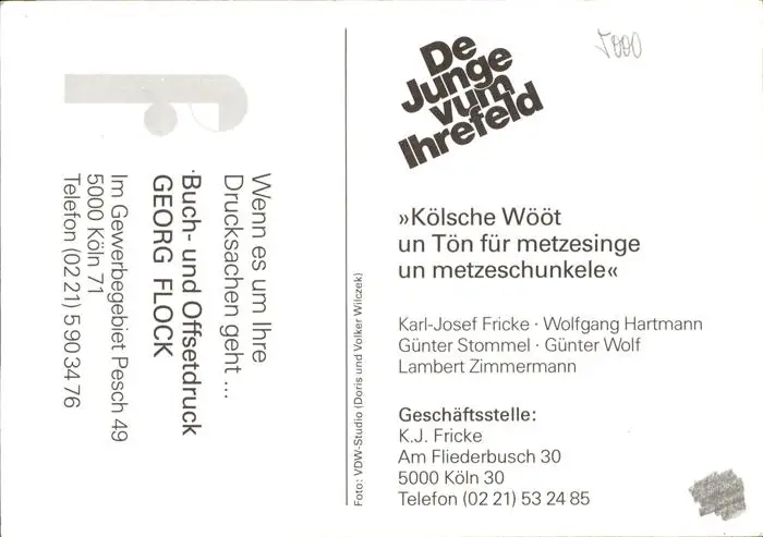 Koeln "De Junge vum Ihrefeld" Koeln postalisch nicht gelaufen nach 1965 Werbekarte (keine Postkarte) gute Erhaltung Werbekarte (keine Postkarte) hz Fhwoer