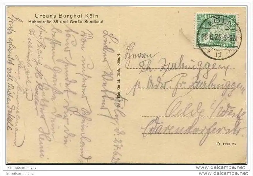 Köln - Urbans Burghof Hohestrasse 38 - Partie im Palmengarten - Verlag M. Dick Köln-N. (E11335) gel. 1925