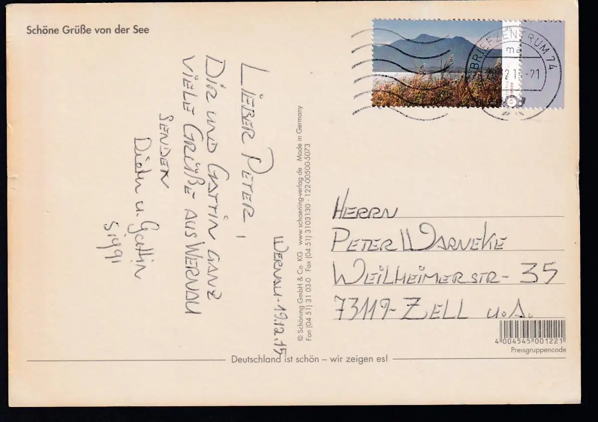 zwei sehr schöne Bahnpostbelege, einmal HUSUM-GARDING von 1916 - ohne Zugnummer aufgrund der Furcht vor feindlicher Spionage - und ERFURT-EISENACH von 1965. Vielen Dank, bin mit der Lieferung sehr zufrieden.