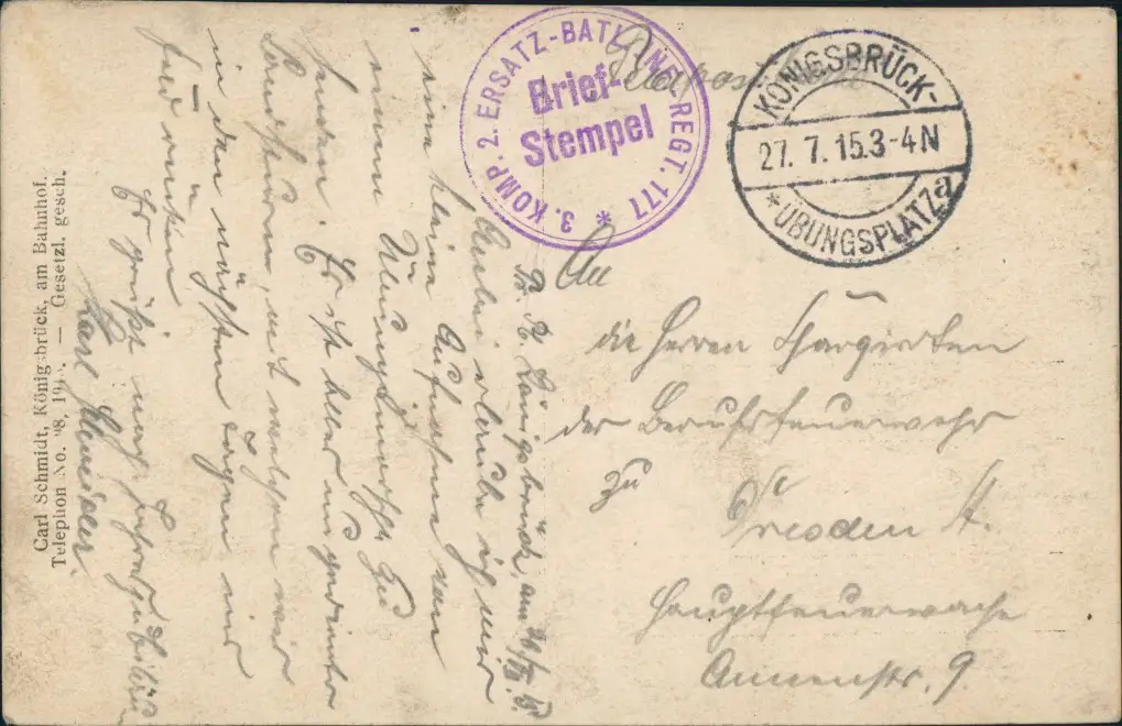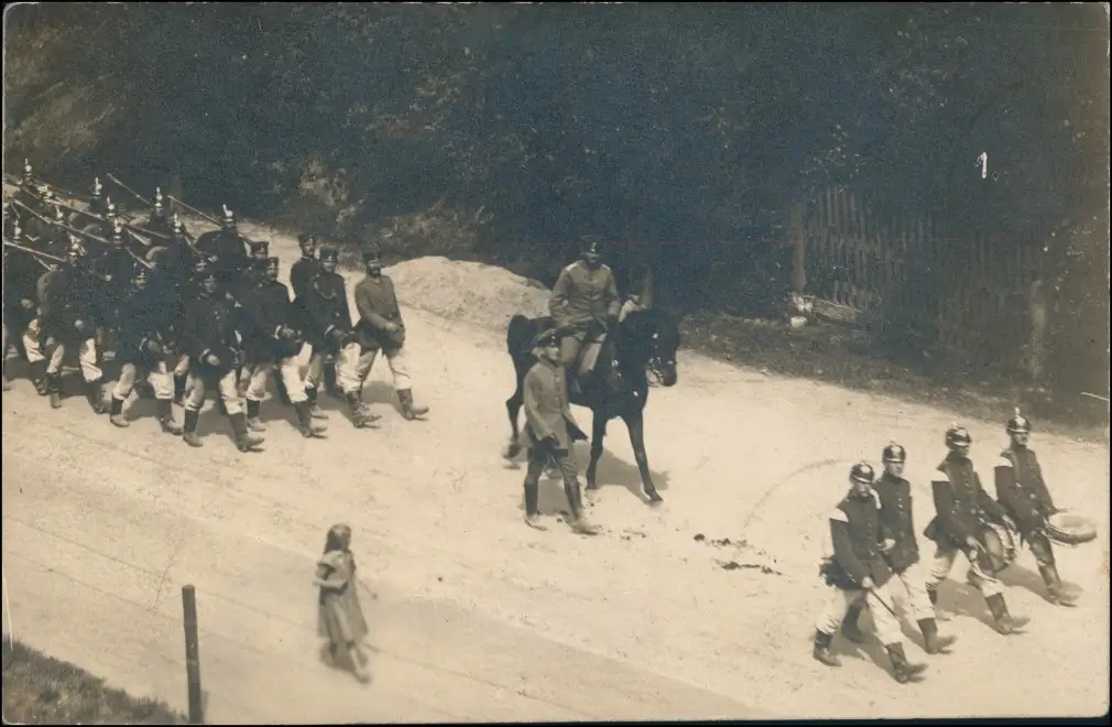 Königsbrück Kinspork marschiernde Soldaten WK1 gel. Feldpost 1915