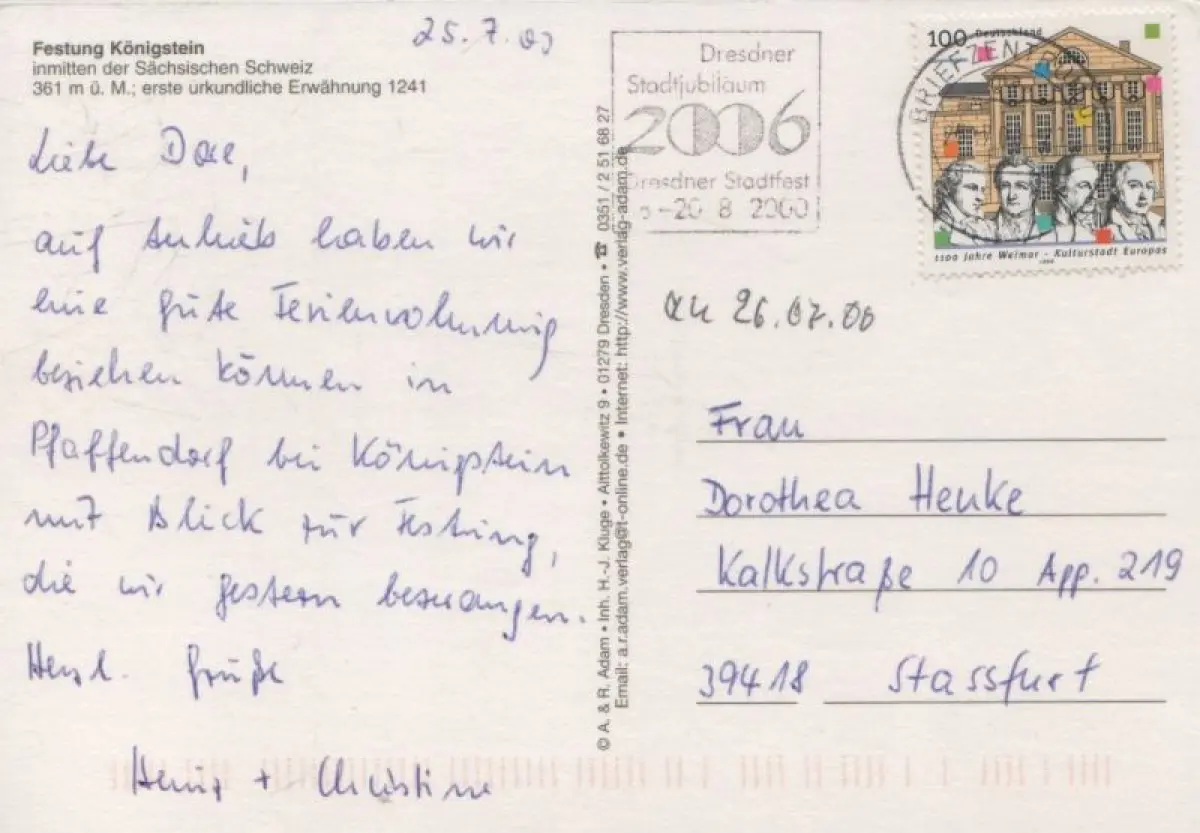 Postleitzahl:01824 (neu) / O 8306 (alt)