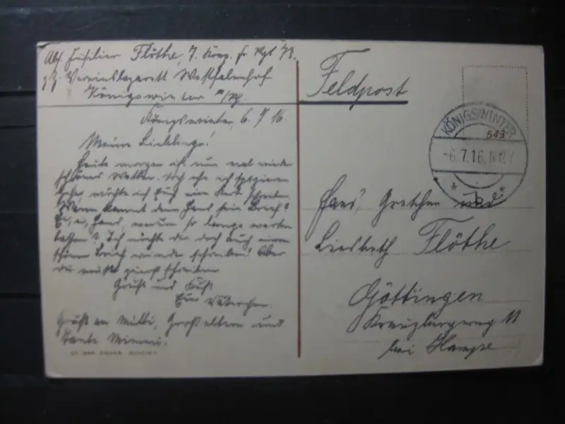 ca. 1916; Unschärfen, Spiegelungen, Verbiegungen, Verwerfungen sind allein durch das abfotografieren bedingt; Karte ist beidseitig abgebildet, Erhalt siehe Scan; ist das Foto qualitativ nicht aussagekräftig genug, kann es besseres Foto angefordert werden. Rückgabe bei Karten ist generell ausgeschlossen.