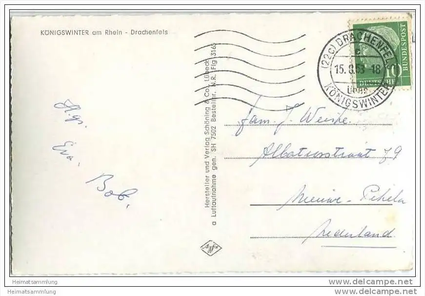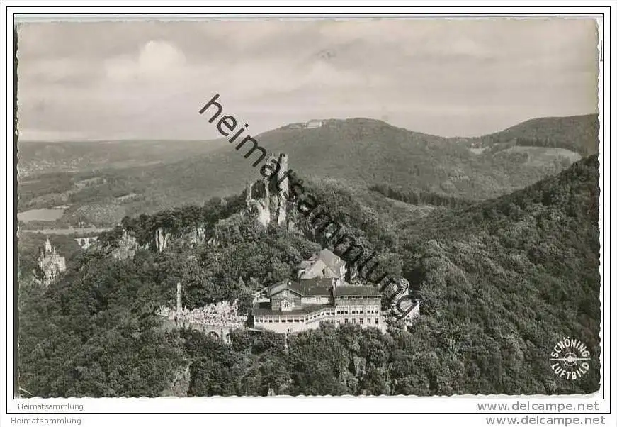 Königswinter - Drachenfels - Luftaufnahme - Foto-AK - leichte Gebrauchsspuren (G23974) gel. 1953