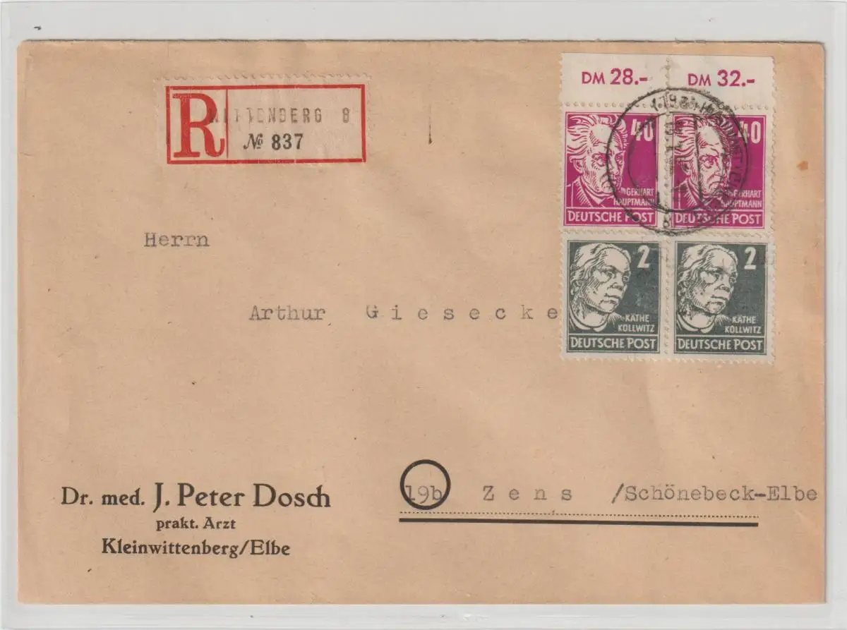 Köpfe I: Einschreibbrief mit 2x 40-Pfg.-Marke in d-Farbe