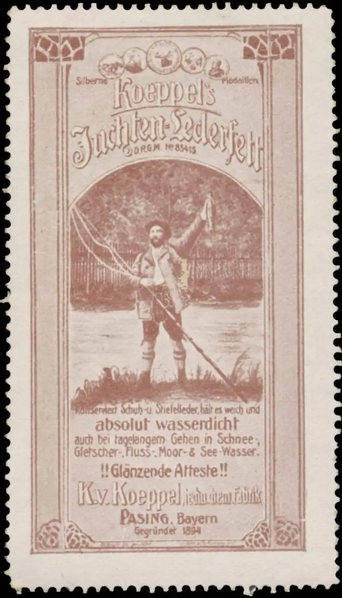 Lederhose, Angler, angeln, gegründet 1894, München, Größe/Zustand: 8x4 , guter Zustand, Original alte Reklamemarke die seinerzeit für die Werbung benutzt wurde