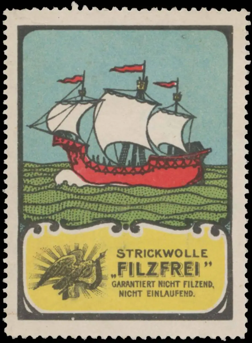 Schiff, Strickwolle filzfrei, garantiert nicht filzend, nicht einlaufend, Wolle, Handarbeit, Größe/Zustand: 6x4 , guter Zustand, Original alte Reklamemarke die seinerzeit für die Werbung benutzt wurde