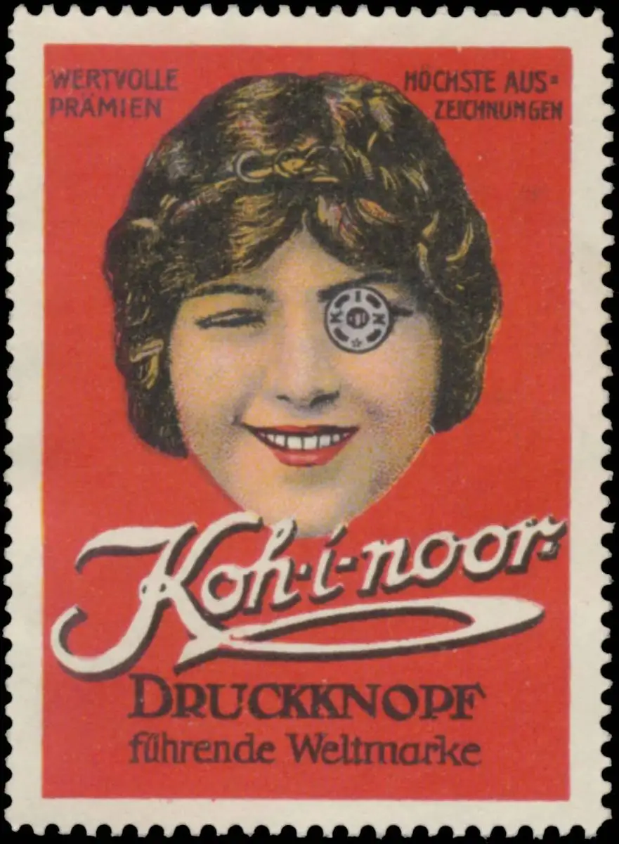 Druckknopf im Auge, Größe/Zustand: 6x4 , guter Zustand, Original alte Reklamemarke die seinerzeit für die Werbung benutzt wurde