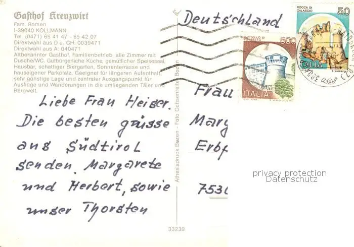Kollmann Gasthof Kreuzwirt postalisch gelaufen 1988 Erhaltung siehe scans [LiesaD40] LiesID40