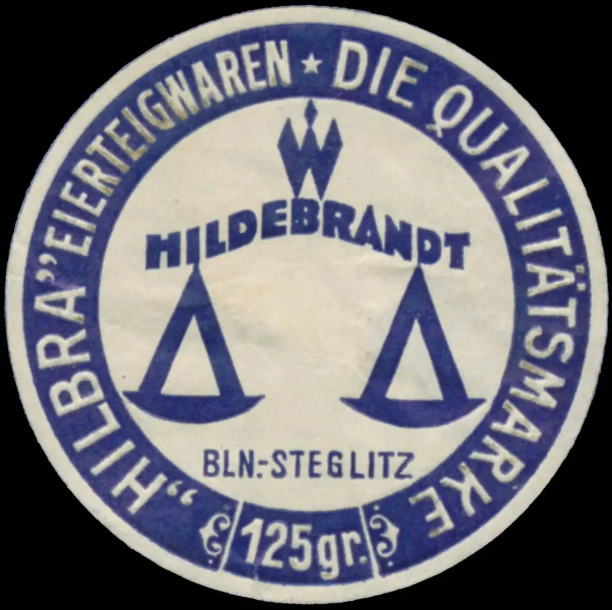 Hilbra, Etikett, Waage, Steglitz, Größe/Zustand: 4 , beschädigt, Original alte Reklamemarke die seinerzeit für die Werbung benutzt wurde