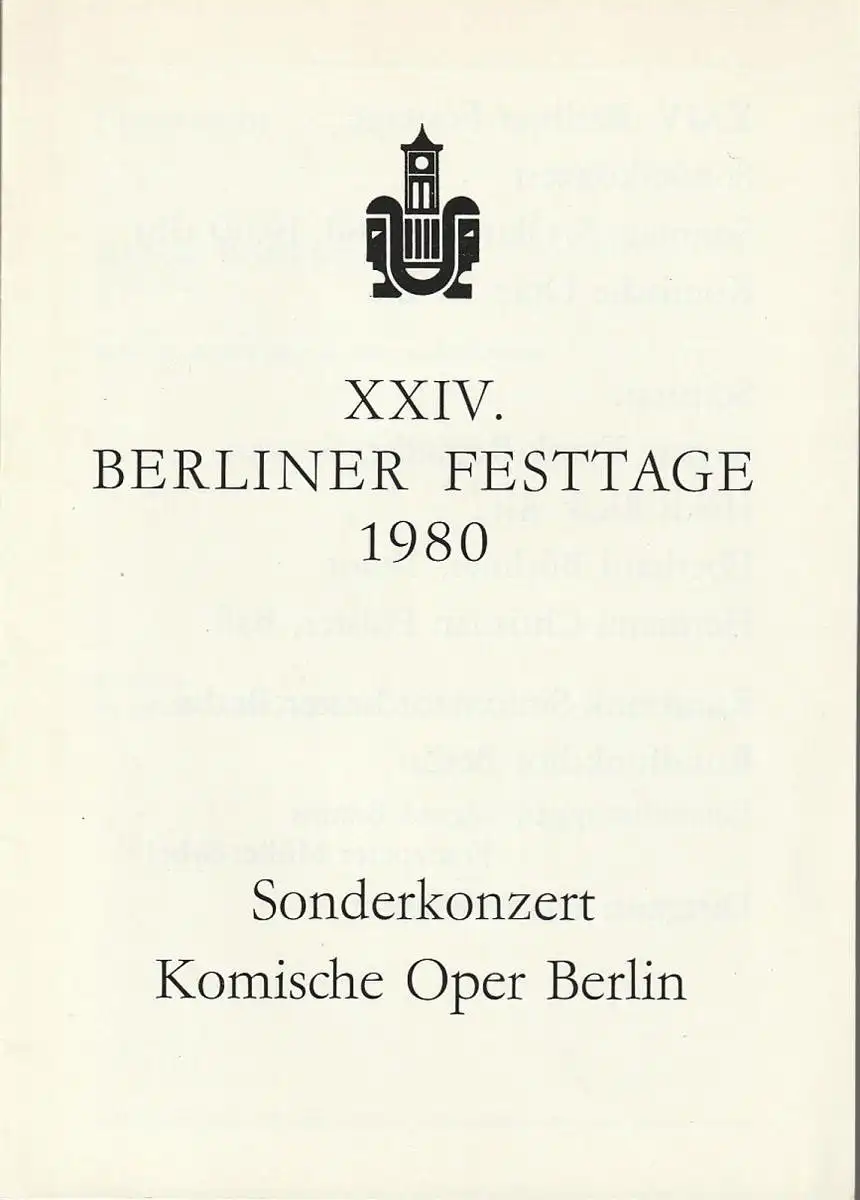 Komische Oper Berlin: Programmheft XXIV. BERLINER FESTTAGE SONDERKONZERT 5. Oktober 1980.