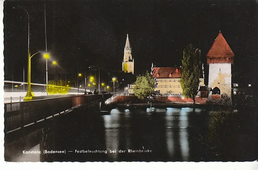 Konstanz Bodensee Festbeleuchtung an der Rheinbrücke ngl D0399
