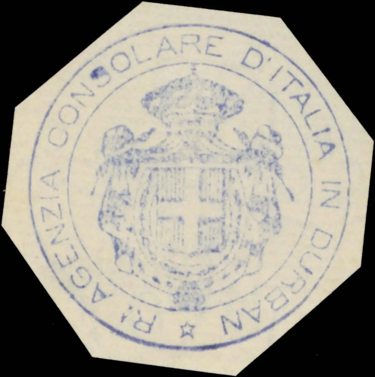 Agenzia consolare d'italia in Durban, Südafrika, Briefsiegelstempel, Größe/Zustand: 4 , guter Zustand, Original Verschluss-Siegelmarke aus Papier welche früher von Behörden, Firmen etc. zum Versiegeln der Briefe benutzt wurden