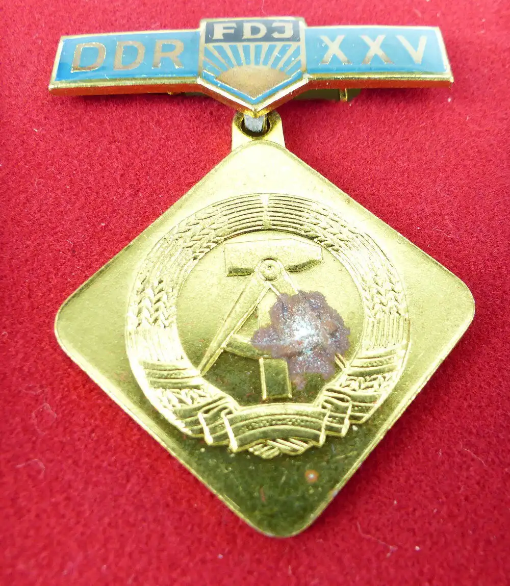 1. FDJ Ehrennadel Freie deutsche Jugend - Für die Festigung unserer Freundschaft + Spange FDJ