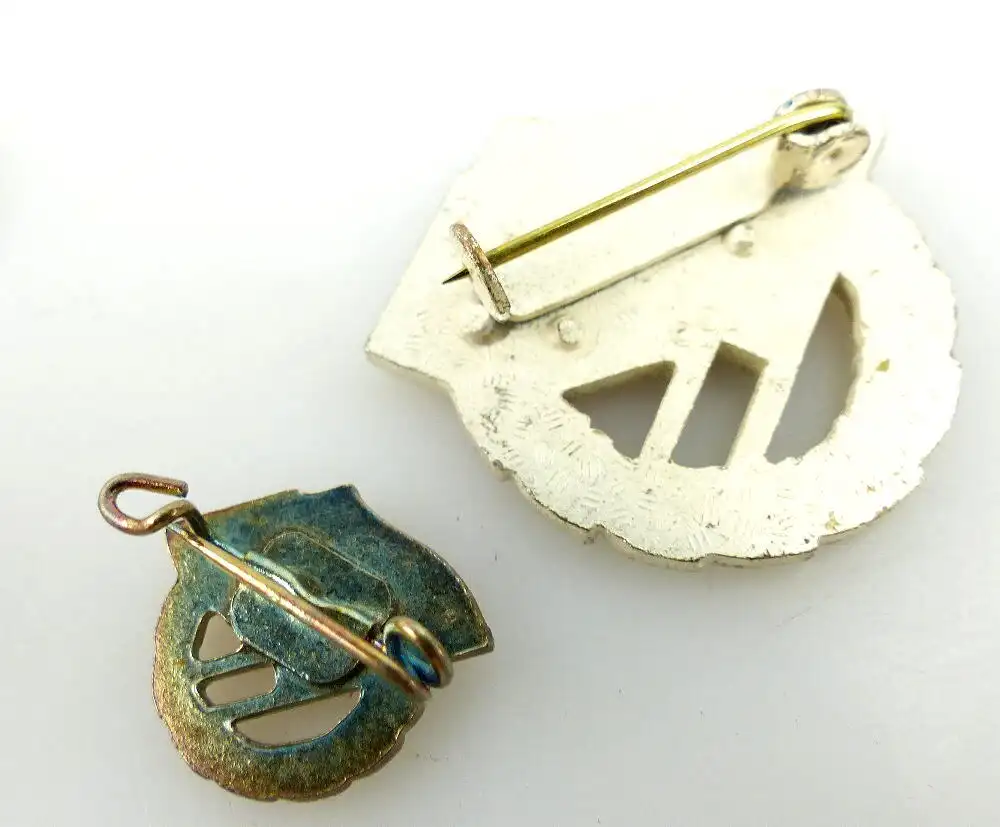 Die Abzeichen sind im gebrauchten Zustand mit leichten Verschmutzungen und kleinen Kratzern.