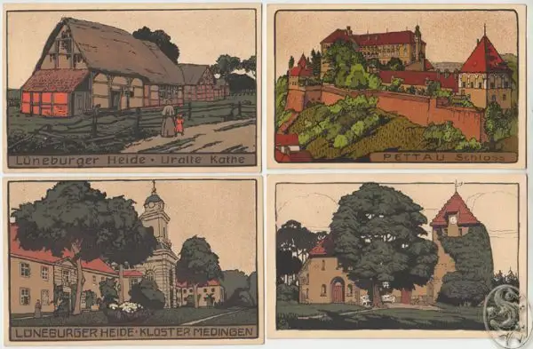 Bemerkungen: Vorhanden: Schloß Pettau, Lüneburger Heide (4), Ruine Gutenstein, Wien-Stephansturm, Wien-Franziskanerkirche.