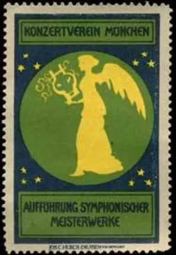 Aufführung symphonischer Meisterwerke, Größe/Zustand: 6x4 , leicht fleckig, Original alte Reklamemarke die seinerzeit für die Werbung benutzt wurde