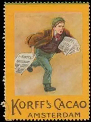 Cacao, Schokolade, Zeitung, Zeitungsbote, Größe/Zustand: 6x4 , fleckig, Original alte Reklamemarke die seinerzeit für die Werbung benutzt wurde