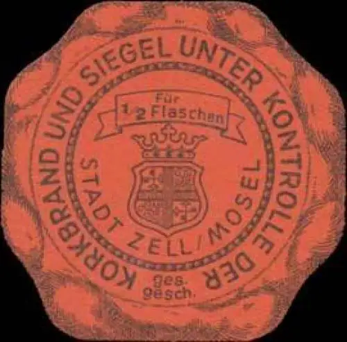 und Siegel unter Kontrolle der Stadt Zell/Mosel, Größe/Zustand: 5x5 , guter Zustand, Original Verschluss-Siegelmarke aus Papier welche früher von Behörden, Firmen etc. zum Versiegeln der Briefe benutzt wurden