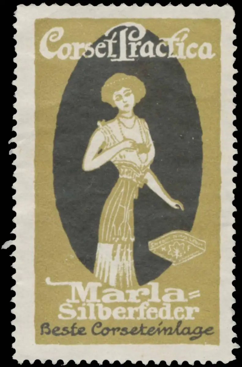 Corset, Marla-Silberfeder beste Corseteinlage, Größe/Zustand: 5x3 , guter Zustand, Original alte Reklamemarke die seinerzeit für die Werbung benutzt wurde