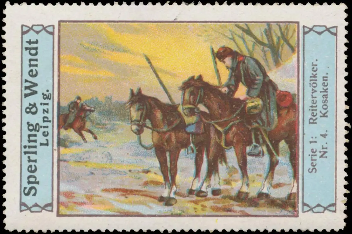 Serie Reitervölker Nr. 4, Sperling & Wendt Kleiderstoffe und Damengarderobe, Petersstraße 37, Pferde, Größe/Zustand: 5x7 , guter Zustand, Original alte Reklamemarke die seinerzeit für die Werbung benutzt wurde