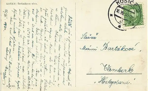Bemerkungen: Gelaufen Kosice - Vamberk, 1934