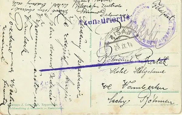 Bemerkungen: Gelaufen 1914. Gestemp.: Zensuriert!