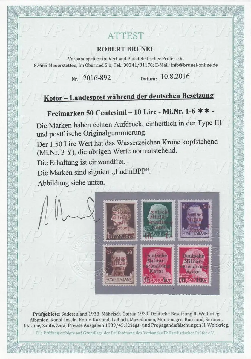 Kotor: MiNr. 1-6, Type I + II + III, postfrisch, **, BPP Signatur