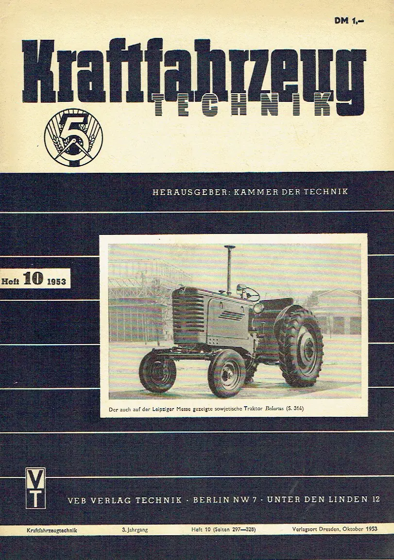 guter bis sehr guter Zustand, geringe Gebrauchs- und Alterungsspuren: Papier etwas vergilbt, aber Seiten sauber und ordentlich - Umschlag und Seiten teils etwas eselsohrig, Aus der Sowjetunion und den Volksrepubliken - Sowjetunion - Iwanow: Kennlinien von Reibstoffen in Reibungskupplungen und Bremsen - Drong: Der sowjetische Traktor Belarus - Simanenko: Ermüdungsbrüche an Verbrennungsmotorenteilen und ihre Verhütung - Schnejersson: Korrektur geradverzahnter Kegelräder - Matjuchow: Nickbewegung eines Gleiskettentraktors beim Betrieb mit Anbaugeräten - Kontor: Gestaltung der Werkstücke für die Oberflächenhärtung und Lötung - Baturin: Schleuderguß für Kolbenringe und Buchsen - Wenzel: Zur Frage der Prüfmethodik von Motorenölen - Polen - Verhinderung von Niederschlägen auf Kraftwagenscheiben - Prusak: Arbeitsorganisation und Methodik in den Entwicklungsabteilungen der Kraftfahrzeugindustrie - Clar: Der Einfluß der Lufttemperatur auf die Batterieleistung im Winter - Hendrichs: Gedanken zur neuzeitlichen Traktorenentwicklung - Hinze/Freche: Über theoretische und praktische Untersuchungen am Vergaser - Novicof: Der IFA-Fallstromvergaser "F 303" und "F 323" - Ventilstößel mit Längenausgleich - Karer: Kegelgleitlager aus Preßstoff ersparen - Kugellagerstahl - Regelung der Verteilung gebrauchter Kraftfahrzeuge - Aster: Aufladung bei LKW-Dieselmotoren - Büchner: IKA-Glühkerzen für Dieselmotoren jeder Art - Weiterentwicklung im Kraftradbau - Ahner: Zur Frage des Motorrollers - Janke: Kraftwagen im Winterbetrieb - Schlaue: Rationalisieren ‒ aber wie? - Gastankstellen in Leipzig - Trunk: Erhöhung der Verkehrssicherheit - Anders: Wissenswertes über Frostschutzmittel - Es geht um 1/1000 mm - Zwei oder drei Plätze im LKW-Fahrerhaus? - Es gab doch schon einen Fahrradmotor! - Kurzberichte aus dem Fachgebiet - Der Verkehrssachverständige hat das Wort - Bei Erkennen einer Gefahr sofort Abwehrmaßnahmen! - Der Jurist hat das Wort - Dürfen Wohnungsmieter ihren PKW auf dem Hof abstellen? - Buchbesprechungen, kartoniert, ca. 21 x 29,5, 32 Seiten mit zahlreichen Bildern