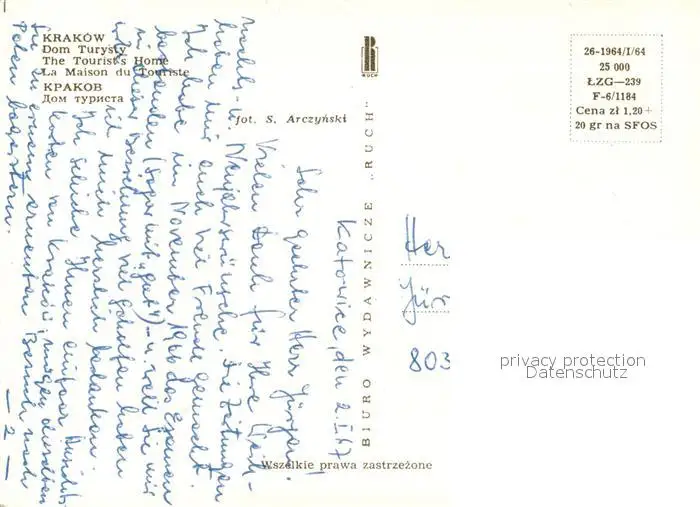 Krakow_Krakau Dom Turysty Krakow Krakau postalisch nicht gelaufen 1967 Erhaltung siehe scans [LiesaD40] LiesID40