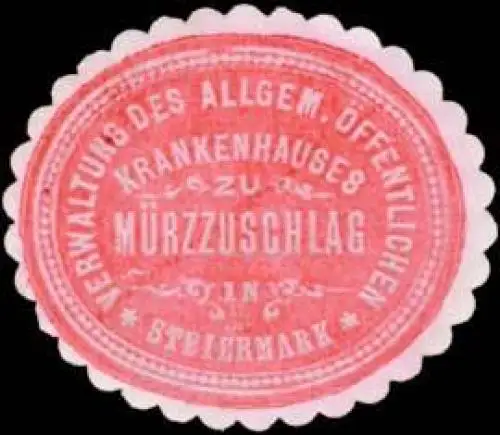 Verwaltung des allgem. Öffentlichen Krankenhauses zu Mürzzuschlag in Steiermark, rosa, weiß, geprägt, Größe/Zustand: 3x4 , guter Zustand, Original Verschluss-Siegelmarke aus Papier welche früher von Behörden, Firmen etc. zum Versiegeln der Briefe benutzt wurden