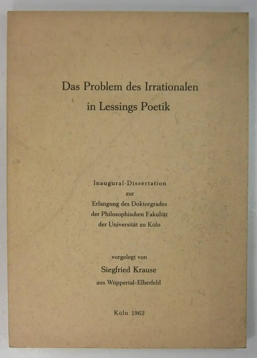 Krause, Siegfried: Das Problem des Irrationalen in Lessings Poetik. (Dissertation).