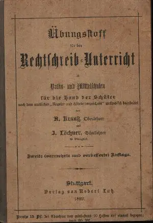 Krauß, H.; Löchner, J.; Übungsstoff für den Rechtschreib - Unterricht in Volks- und Mittelschulen für die Hand der Schüler; Schulbuch; Rechtschreibung; Deutsch