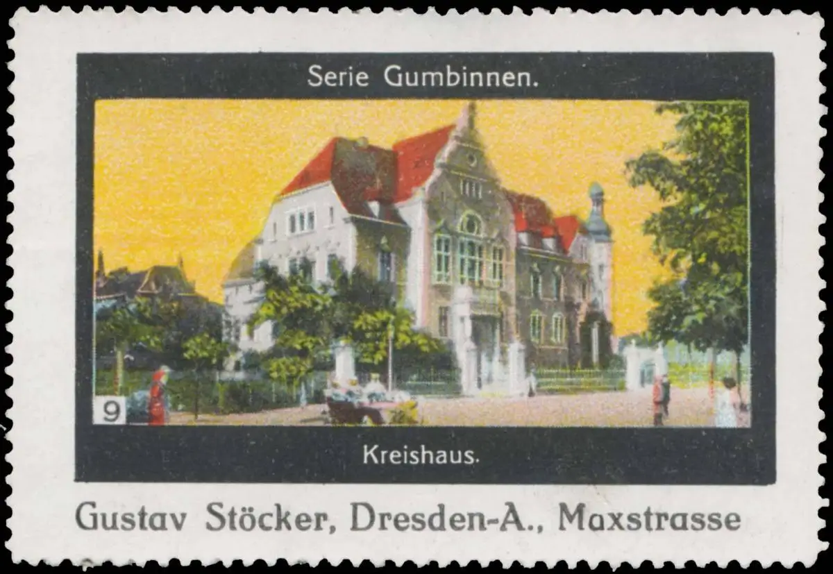 Serie Gumbinnen, 9, Größe/Zustand: 5x7 , guter Zustand, Original alte Reklamemarke die seinerzeit für die Werbung benutzt wurde